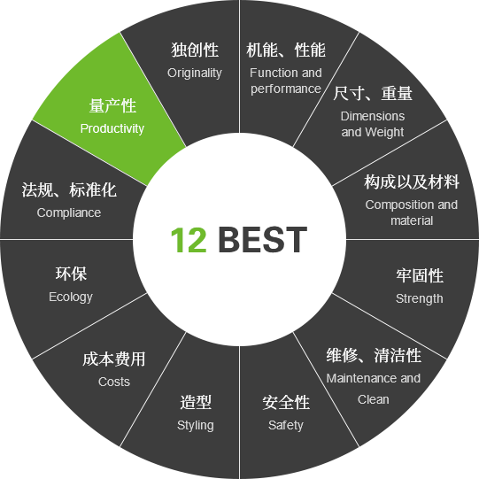 產量 法規 環保 成本 造型 安全性 維修 牢固 構成 尺寸 機能 獨創